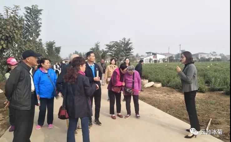 云臺(tái)冰菊邀請(qǐng)焦作市財(cái)政局退休老干部參觀云臺(tái)冰菊種植基地,由公司總經(jīng)理崔愛(ài)敏女士全程陪同講解參觀,一起探尋云臺(tái)冰菊的發(fā)展歷史。